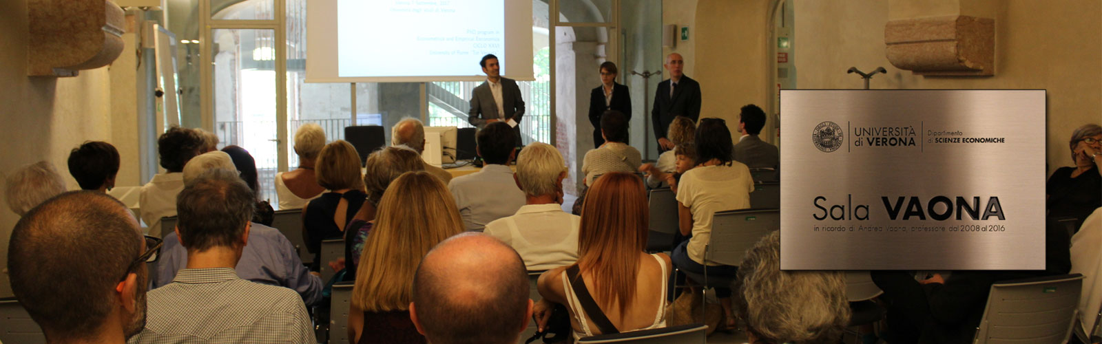 Alla presenza del rettore Nicola Sartor e della famiglia di Andrea Vaona, durante la cerimonia di intitolazione il docente è stato ricordato per la sua attività in dipartimento e l’attenzione nella didattica e nell’attività istituzionale. Nonostante la malattia, anche durante i mesi precedenti la sua scomparsa è stato impegnato in attività di ricerca.